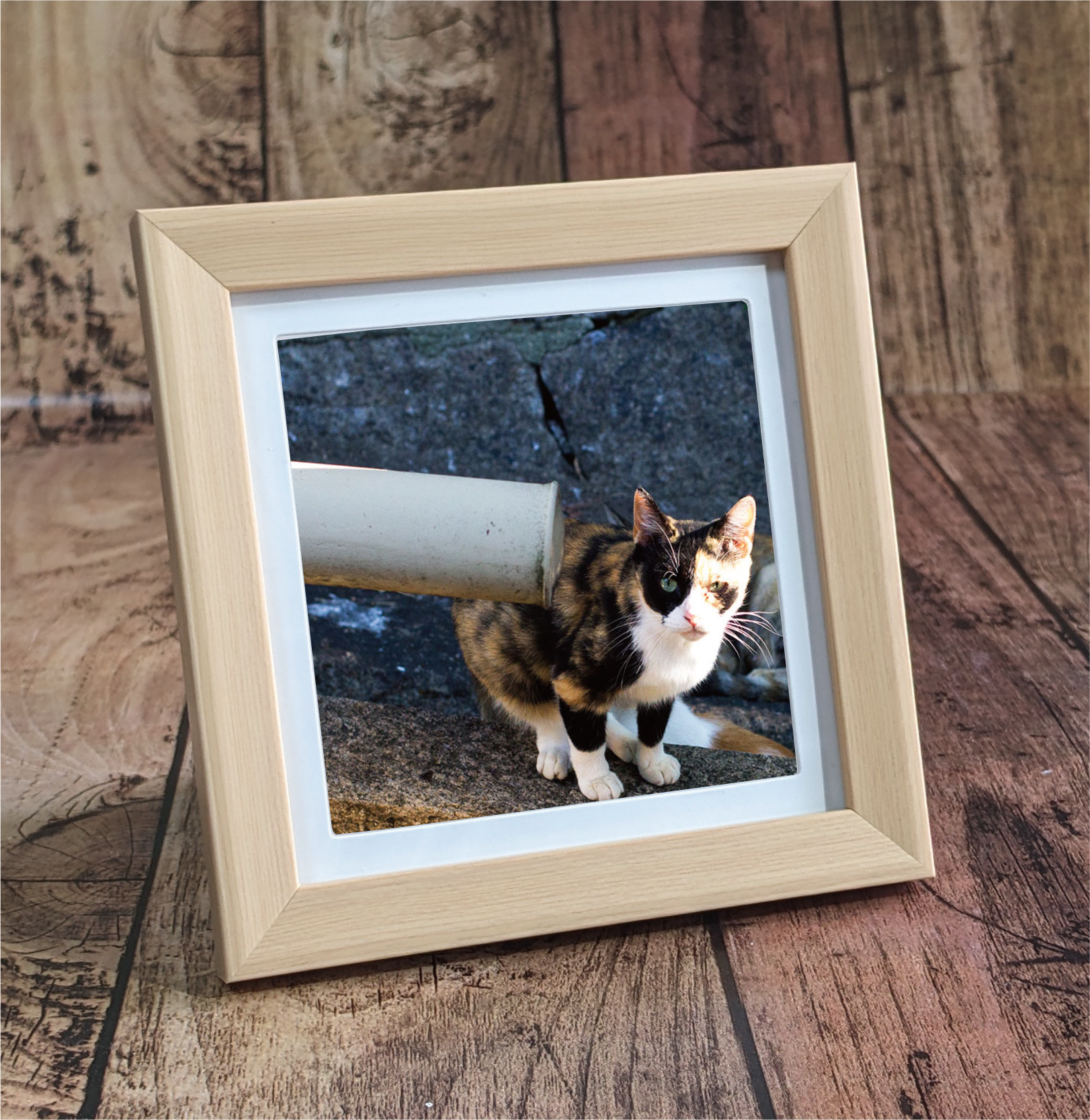 癒しの空間を演出するアイテム。酸素をはぐくむ美しい風景の中の鋭い眼光のニャン助を四角の額に収めました。部屋の中に飾るだけで、心地よい癒しのエネルギーを実感できます。